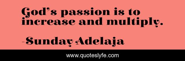 This page presents the quote "God’s passion is to increase and multiply.". Author of this quote is Sunday Adelaja. This quote is about increase, multiply, passion,.