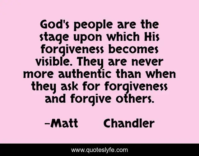 This page presents the quote "God's people are the stage upon which His forgiveness becomes visible. They are never more authentic than when they ask for forgiveness and forgive others.". Author of this quote is Matt Chandler. This quote is about confession, community, humility,.