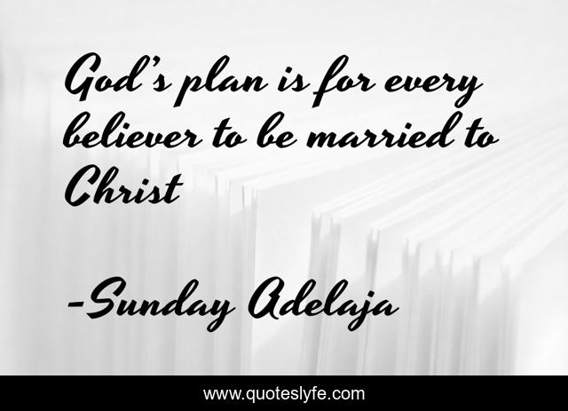This page presents the quote "God’s plan is for every believer to be married to Christ". Author of this quote is Sunday Adelaja. This quote is about god, married, christ, believer, plan,.