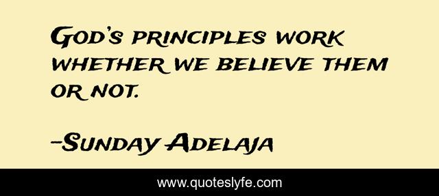 This page presents the quote "God’s principles work whether we believe them or not.". Author of this quote is Sunday Adelaja. This quote is about believe, work, principles,.