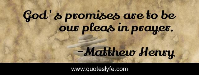 This page presents the quote "God's promises are to be our pleas in prayer.". Author of this quote is Matthew Henry. .