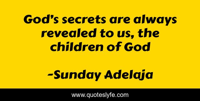 This page presents the quote "God’s secrets are always revealed to us, the children of God". Author of this quote is Sunday Adelaja. This quote is about prosperity, wealth, god, riches, us, secret, money, truth-of-life, revealed,.