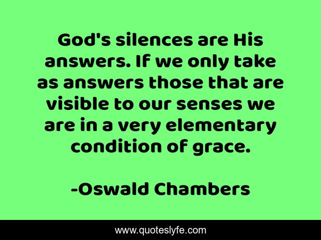 This page presents the quote "God's silences are His answers. If we only take as answers those that are visible to our senses we are in a very elementary condition of grace.". Author of this quote is Oswald Chambers. .