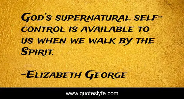"Elizabeth George Quotes." Quoteslyfe.com, 2025. Sat. 06 Dec. 2025. <https://www.quoteslyfe.com/quote/God-s-supernatural-self-control-is-available-139538>.