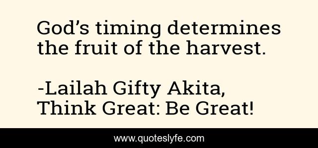 "Lailah Gifty Akita, Think Great: Be Great! Quotes." Quoteslyfe.com, 2025. Sat. 06 Dec. 2025. <https://www.quoteslyfe.com/quote/God-s-timing-determines-the-fruit-of-85025>.
