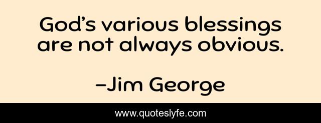 "Jim George Quotes." Quoteslyfe.com, 2025. Fri. 05 Dec. 2025. <https://www.quoteslyfe.com/quote/God-s-various-blessings-are-not-always-169451>.