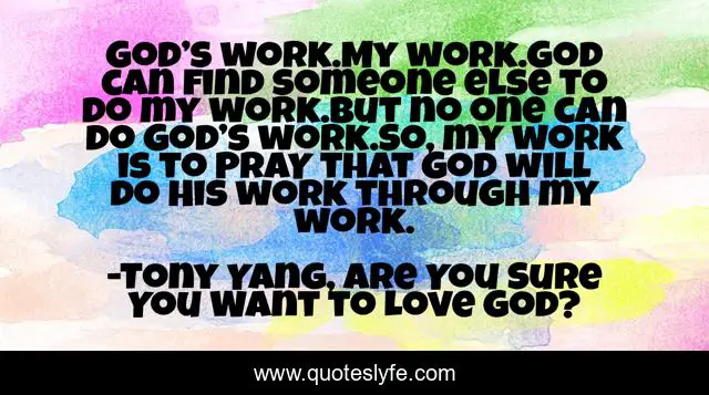 "Tony Yang, Are You Sure You Want to Love God? Quotes." Quoteslyfe.com, 2025. Fri. 05 Dec. 2025. <https://www.quoteslyfe.com/quote/God-s-work-My-work-God-can-114900>.