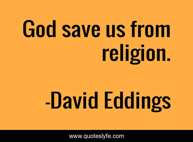 This page presents the quote "God save us from religion.". Author of this quote is David Eddings. This quote is about organized-religion, inspirational, savior, enthusiasm,.