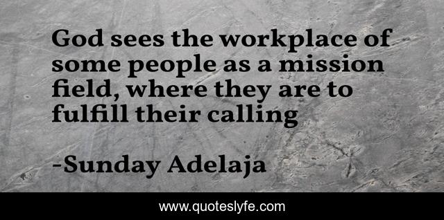 This page presents the quote "God sees the workplace of some people as a mission field, where they are to fulfill their calling". Author of this quote is Sunday Adelaja. This quote is about people, god, mission, calling, field, workplace, fulfill,.