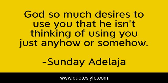 This page presents the quote "God so much desires to use you that he isn't thinking of using you just anyhow or somehow.". Author of this quote is Sunday Adelaja. This quote is about desire, god,.