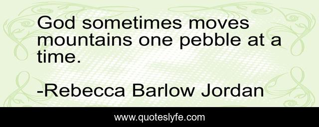 This page presents the quote "God sometimes moves mountains one pebble at a time.". Author of this quote is Rebecca Barlow Jordan. This quote is about faith, trust, christianity, hope, religion,.