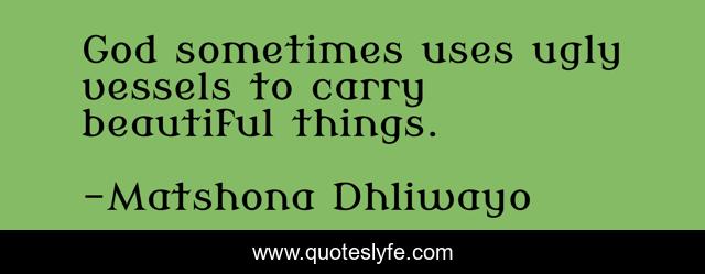 "Matshona Dhliwayo Quotes." Quoteslyfe.com, 2025. Sun. 07 Dec. 2025. <https://www.quoteslyfe.com/quote/God-sometimes-uses-ugly-vessels-to-carry-15221>.