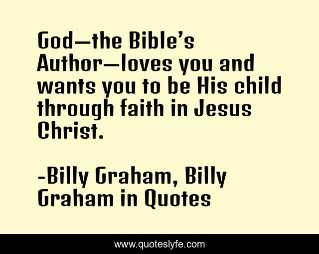 This page presents the quote "God—the Bible’s Author—loves you and wants you to be His child through faith in Jesus Christ.". Author of this quote is Billy Graham, Billy Graham in Quotes. This quote is about faith, billy-graham,.