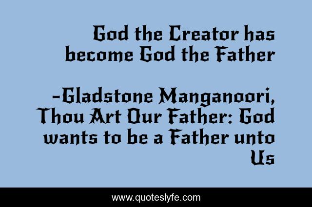 "Gladstone Manganoori, Thou Art Our Father: God wants to be a Father unto Us Quotes." Quoteslyfe.com, 2025. Mon. 08 Dec. 2025. <https://www.quoteslyfe.com/quote/God-the-Creator-has-become-God-the-61901>.