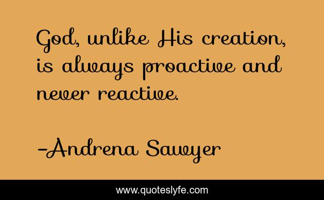 "Andrena Sawyer Quotes." Quoteslyfe.com, 2025. Fri. 05 Dec. 2025. <https://www.quoteslyfe.com/quote/God-unlike-His-creation-is-always-proactive-199562>.