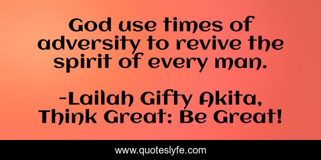 "Lailah Gifty Akita, Think Great: Be Great! Quotes." Quoteslyfe.com, 2025. Fri. 05 Dec. 2025. <https://www.quoteslyfe.com/quote/God-use-times-of-adversity-to-revive-95144>.