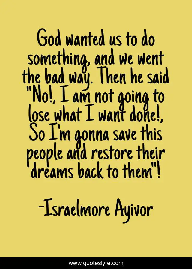 "Israelmore Ayivor Quotes." Quoteslyfe.com, 2025. Fri. 05 Dec. 2025. <https://www.quoteslyfe.com/quote/God-wanted-us-to-do-something-and-105830>.