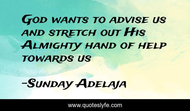 This page presents the quote "God wants to advise us and stretch out His Almighty hand of help towards us". Author of this quote is Sunday Adelaja. This quote is about prosperity, towards, help, stretch, god, riches, possible, us, hand,.