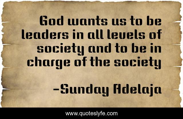 This page presents the quote "God wants us to be leaders in all levels of society and to be in charge of the society". Author of this quote is Sunday Adelaja. This quote is about god, charge, levels, leaders, society,.