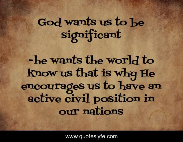 This page presents the quote "God wants us to be significant". Author of this quote is he wants the world to know us that is why He encourages us to have an active civil position in our nations. .