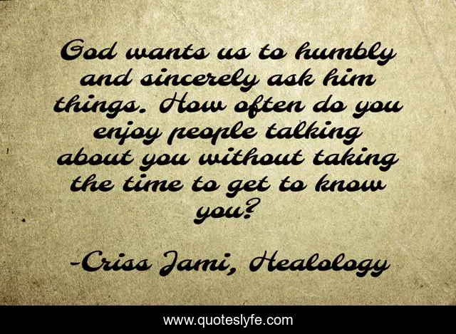 "Criss Jami, Healology Quotes." Quoteslyfe.com, 2025. Sun. 07 Dec. 2025. <https://www.quoteslyfe.com/quote/God-wants-us-to-humbly-and-sincerely-115068>.