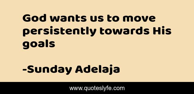 This page presents the quote "God wants us to move persistently towards His goals". Author of this quote is Sunday Adelaja. This quote is about wants, prosperity, towards, wealth, god, move, riches, goals, money,.