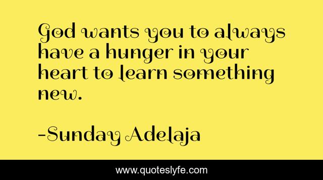 This page presents the quote "God wants you to always have a hunger in your heart to learn something new.". Author of this quote is Sunday Adelaja. This quote is about heart, hunger, learn,.