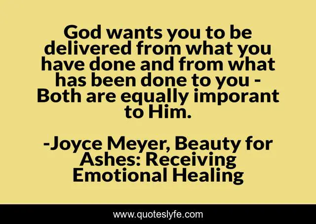 "Joyce Meyer, Beauty for Ashes: Receiving Emotional Healing Quotes." Quoteslyfe.com, 2025. Sun. 07 Dec. 2025. <https://www.quoteslyfe.com/quote/God-wants-you-to-be-delivered-from-210165>.