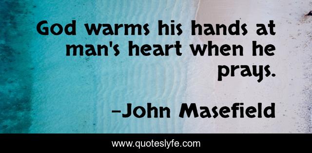 This page presents the quote "God warms his hands at man's heart when he prays.". Author of this quote is John Masefield. .