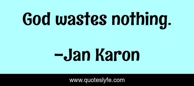This page presents the quote "God wastes nothing.". Author of this quote is Jan Karon. This quote is about self, knowledge,.