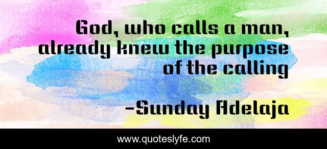 This page presents the quote "God, who calls a man, already knew the purpose of the calling". Author of this quote is Sunday Adelaja. This quote is about fulfillment, god, calling, purpose, man,.