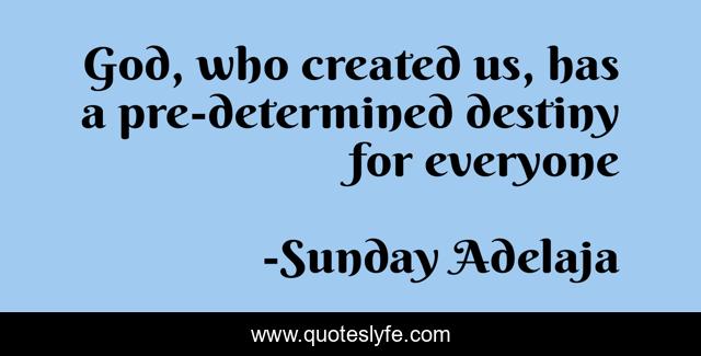 This page presents the quote "God, who created us, has a pre-determined destiny for everyone". Author of this quote is Sunday Adelaja. This quote is about destiny, god, create, calling, fulfillment, purpose,.