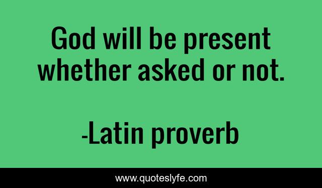 This page presents the quote "God will be present whether asked or not.". Author of this quote is Latin proverb. .