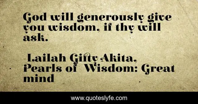 "Lailah Gifty Akita, Pearls of Wisdom: Great mind Quotes." Quoteslyfe.com, 2025. Fri. 05 Dec. 2025. <https://www.quoteslyfe.com/quote/God-will-generously-give-you-wisdom-if-107235>.