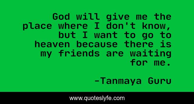 This page presents the quote "God will give me the place where I don't know, but I want to go to heaven because there is my friends are waiting for me.". Author of this quote is Tanmaya Guru. .