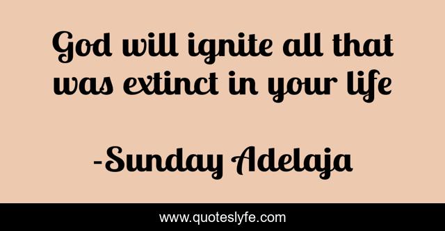 This page presents the quote "God will ignite all that was extinct in your life". Author of this quote is Sunday Adelaja. This quote is about ignite, life, god, calling, fulfillment, extinct, purpose,.