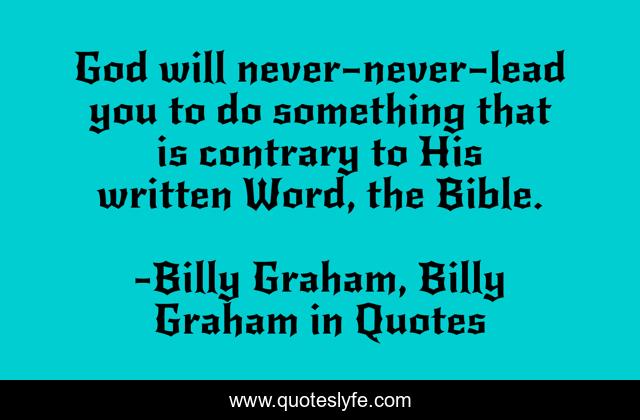 This page presents the quote "God will never—never—lead you to do something that is contrary to His written Word, the Bible.". Author of this quote is Billy Graham, Billy Graham in Quotes. This quote is about god-s-will, billy-graham,.