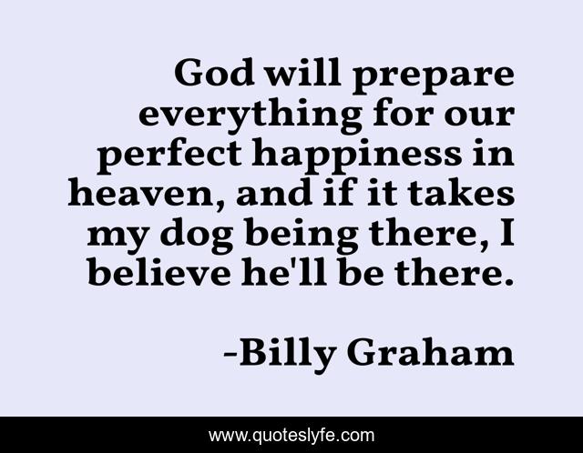 God will prepare everything for our perfect happiness in heaven, and if it takes my dog being there, I believe he'll be there.