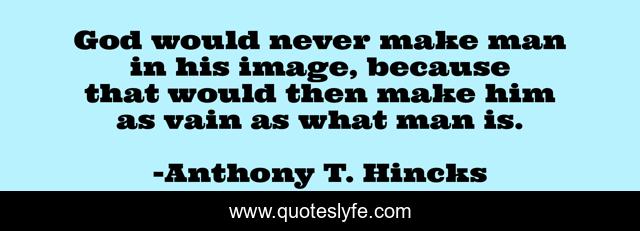 This page presents the quote "God would never make man in his image, because that would then make him as vain as what man is.". Author of this quote is Anthony T. Hincks. This quote is about because, god, image, philosophy, make, man, vain, vanity,.