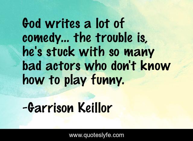 This page presents the quote "God writes a lot of comedy... the trouble is, he's stuck with so many bad actors who don't know how to play funny.". Author of this quote is Garrison Keillor. This quote is about god, play,.