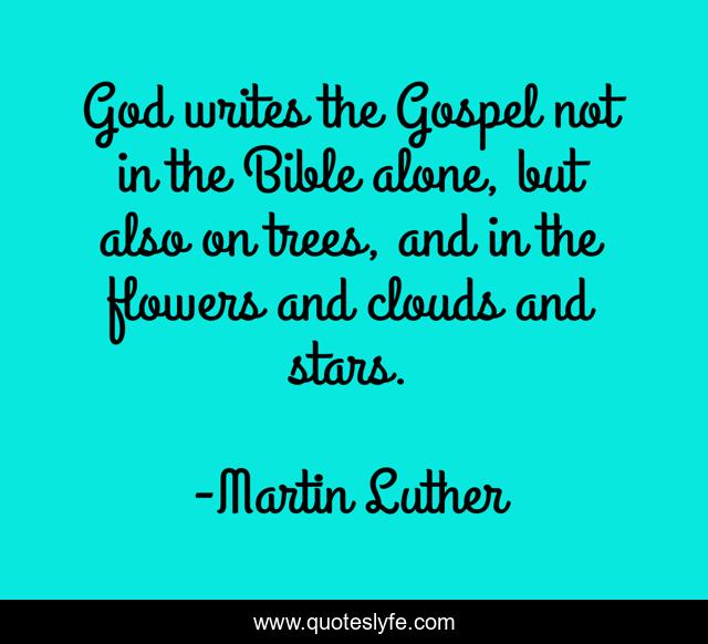 This page presents the quote "God writes the Gospel not in the Bible alone, but also on trees, and in the flowers and clouds and stars.". Author of this quote is Martin Luther. This quote is about alone, flowers, stars,.