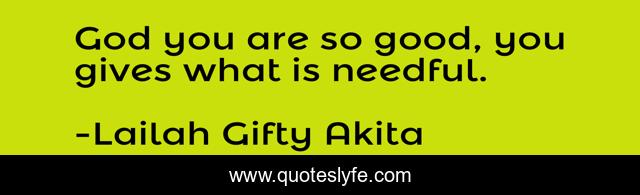 This page presents the quote "God you are so good, you gives what is needful.". Author of this quote is Lailah Gifty Akita. This quote is about faith, inspiring, christian, god, needful, supplication, goodness, hope,.