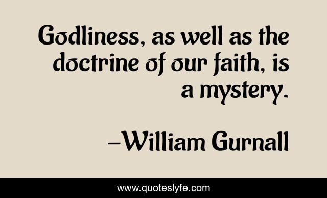 This page presents the quote "Godliness, as well as the doctrine of our faith, is a mystery.". Author of this quote is William Gurnall. This quote is about mystery, well, godliness,.