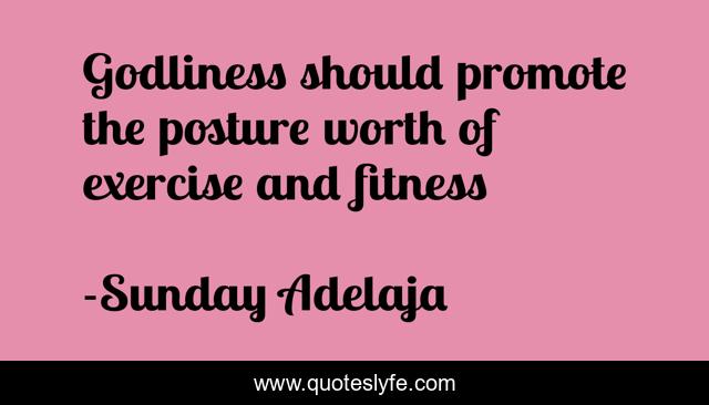 This page presents the quote "Godliness should promote the posture worth of exercise and fitness". Author of this quote is Sunday Adelaja. This quote is about godliness, promote, worth, posture,.