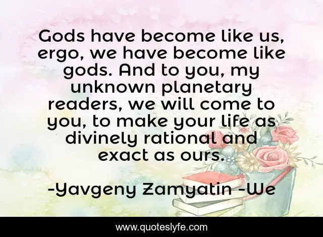 "Yavgeny Zamyatin -We Quotes." Quoteslyfe.com, 2025. Fri. 05 Dec. 2025. <https://www.quoteslyfe.com/quote/Gods-have-become-like-us-ergo-we-54668>.