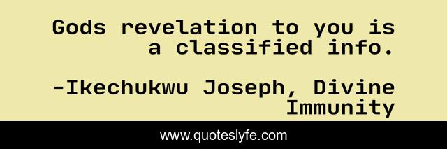 This page presents the quote "Gods revelation to you is a classified info.". Author of this quote is Ikechukwu Joseph, Divine Immunity. This quote is about confidence, christian, positive, motivational, optimistic, divine-immunity,.