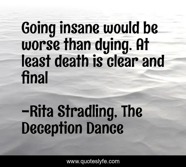 "Rita Stradling, The Deception Dance Quotes." Quoteslyfe.com, 2025. Fri. 05 Dec. 2025. <https://www.quoteslyfe.com/quote/Going-insane-would-be-worse-than-dying-221086>.