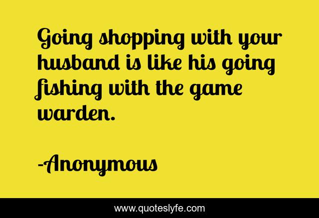 This page presents the quote "Going shopping with your husband is like his going fishing with the game warden.". Author of this quote is Anonymous. This quote is about love, marriage, affection,.
