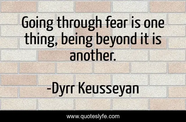 "Dyrr Keusseyan Quotes." Quoteslyfe.com, 2025. Sat. 06 Dec. 2025. <https://www.quoteslyfe.com/quote/Going-through-fear-is-one-thing-being-44399>.
