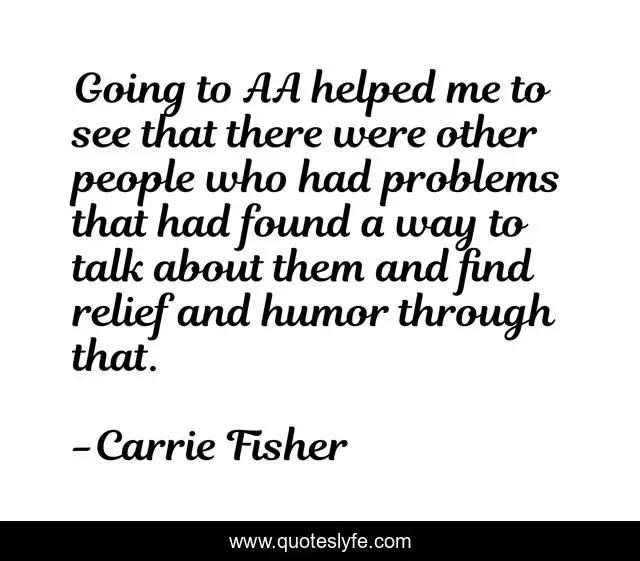 This page presents the quote "Going to AA helped me to see that there were other people who had problems that had found a way to talk about them and find relief and humor through that.". Author of this quote is Carrie Fisher. This quote is about me, problems, people,.
